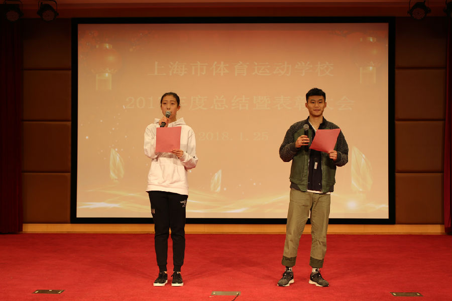 1月25日,上海市体育运动学校2017年度总结暨表彰大会在六楼大礼堂举行。礼堂内济济一堂,除全体学生及教职员工外,还有曹燕华乒乓球俱乐部、上海李秋平青少年篮球运动发展中心的各位教练老师们,以及为学校的后勤、安保等作出很大贡献的延吉物业、上海赞贤餐饮管理有限公司的各位师傅们。