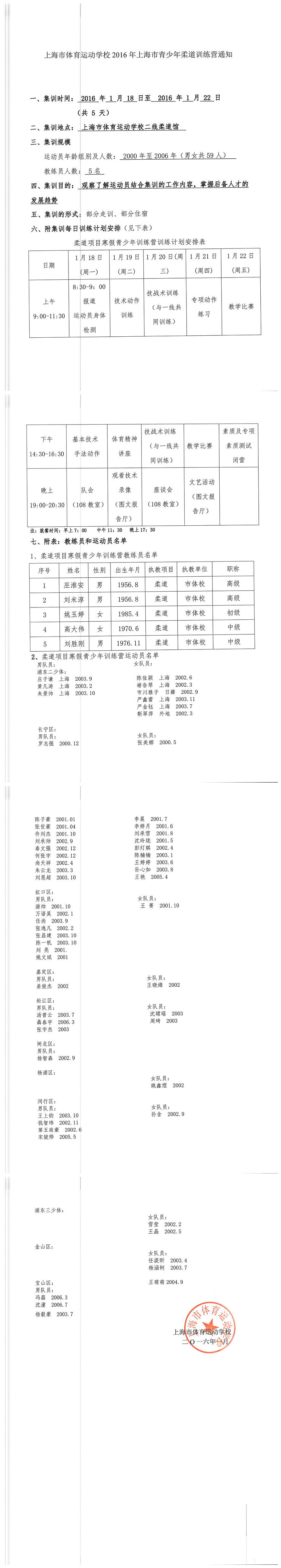 上海市体育运动学校2016年上海市青少年柔道训练营通知